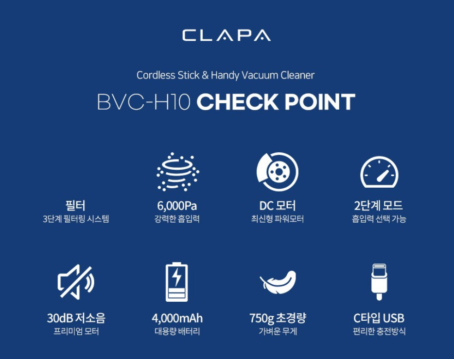 클래파 DC모터 스틱&핸디형 무선 청소기 BVC-H10
